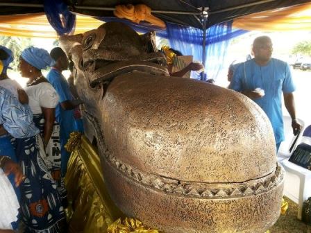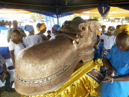 An Akwa Ibom artist better known as Teacher Ite was buried in this giant shoe casket made by his two sons who are also artists on Saturday November 28th.